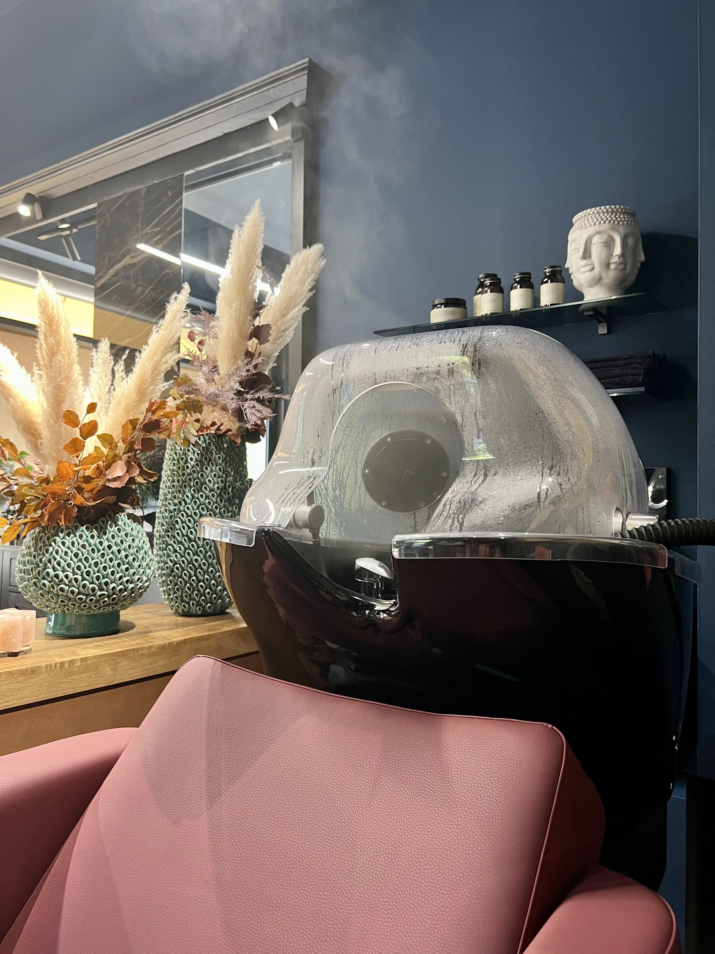 Il lavaggio corredato di Carrello Vapore Vapomist e Calotta Shirodara per un esperienza di benessere totale.